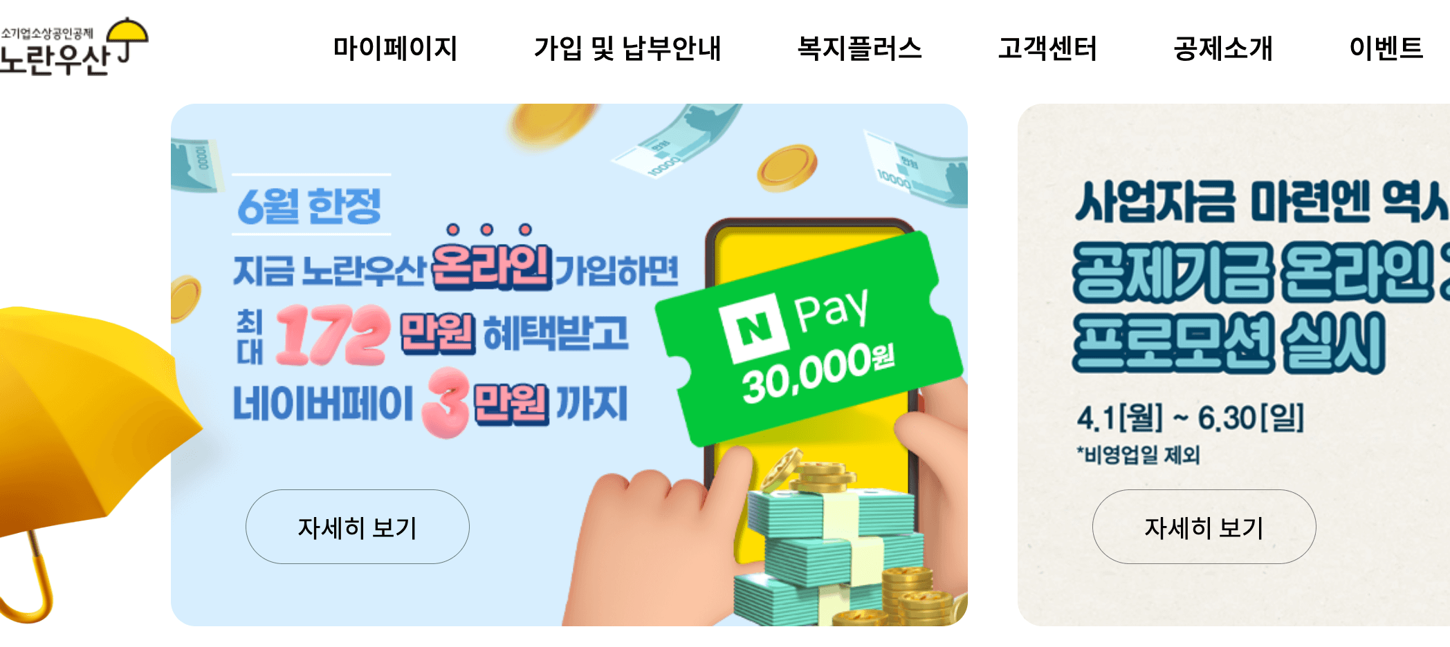 중소기업중앙회에서 진행하는 노란우산공제는 최대 500만원까지 소득공제를 받을 수 있습니다. 6월 한달동안만 네이버페이 3만원도 추가로 지급된다고 합니다. 가입을 안하신 분들은 이번 기회에 가입하셔서 3만원도 추가로 받아가시길 바랍니다.