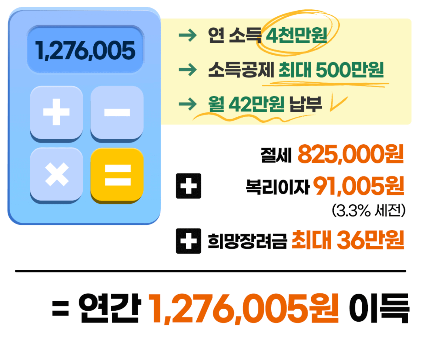 절세 825,000원 + 복리이자 91,005원 + 희망장려금 최대 36만원